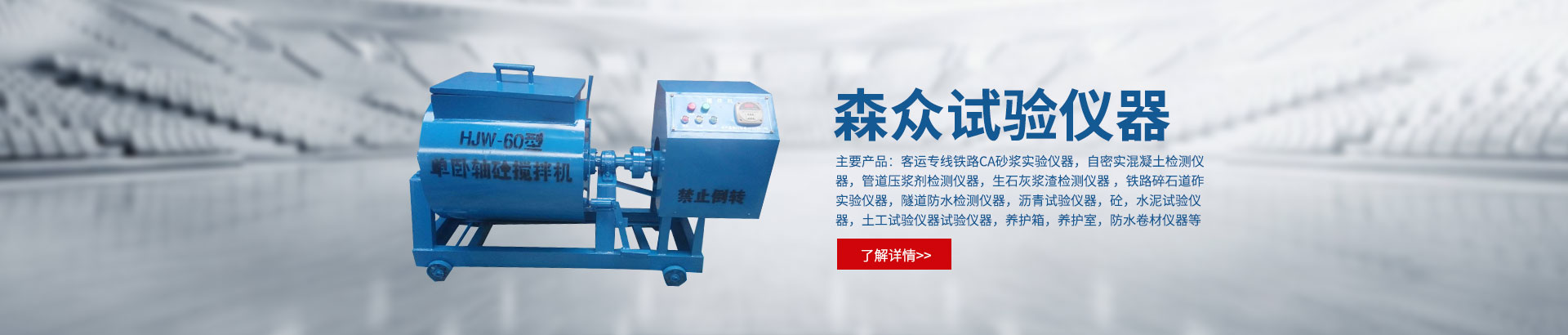 完善的售后服務(wù)體系滄州森眾試驗(yàn)儀器有限公司是目前國內(nèi)生產(chǎn)公路試驗(yàn)儀器、建筑試驗(yàn)儀器的重點(diǎn)骨干企業(yè)。在國內(nèi)具有較高的度,檢測(cè)手段完善,技術(shù)力量雄厚。產(chǎn)品嚴(yán)格按照,國家標(biāo)準(zhǔn)設(shè)計(jì)生產(chǎn),多次在國家重點(diǎn)工程中標(biāo)。除配套供應(yīng)試驗(yàn)儀器設(shè)備外,我公司還承擔(dān)新建試驗(yàn)室的規(guī)劃設(shè)計(jì),設(shè)備選型,安裝調(diào)試,配件供應(yīng)與后勤保障等業(yè)務(wù)。主要產(chǎn)品:客運(yùn)專線鐵路CA砂漿實(shí)驗(yàn)儀器,自密實(shí)混凝土檢測(cè)儀器,管道壓漿劑檢測(cè)儀器,生石灰漿渣檢測(cè)儀器,鐵路碎石...